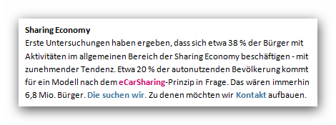 alternativen Nutzungskonzept in einem geschlossenen Nutzerkreis (Kunde nutzt Auto)
